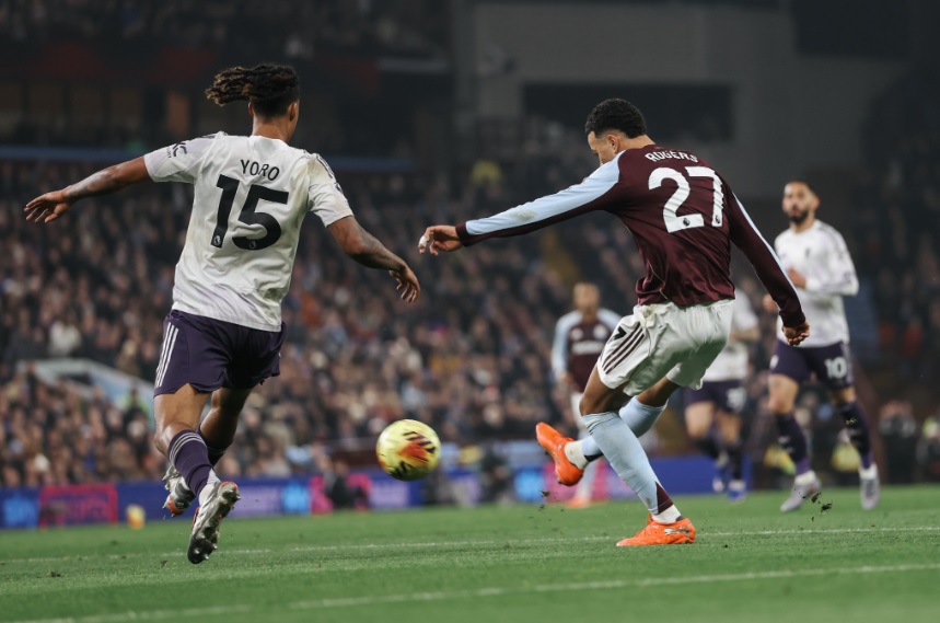 Gol pembuka Aston Villa tercipta pada menit ke-45. Rogers mengontrol umpan John McGinn, melewati Leny Yoro, lalu melepaskan tembakan melengkung yang tak mampu dijangkau kiper United, Senne Lammens.