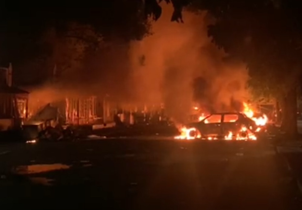 Keesokan harinya, Jumat, kawasan parkir TMP Kalibata dipasang garis polisi setelah peristiwa pembakaran pada malam sebelumnya. Barang dagangan berserakan berupa pecahan kaca, sampah durian, gerobak, tenda yang hangus terbakar, hingga besi-besi yang menghitam. Mobil taksi listrik dan sepeda motor yang dibakar juga sudah dievakuasi dari lokasi.